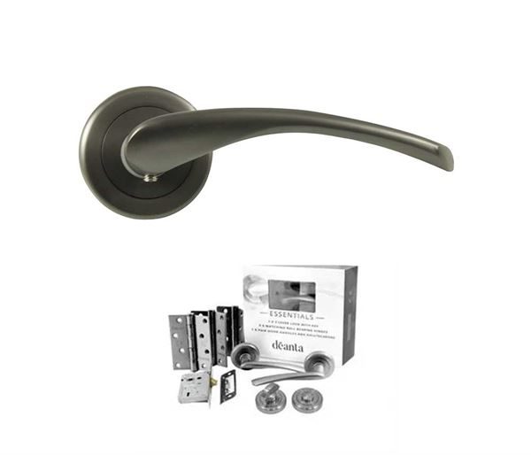 Lock sets may come with the deanta lock or a equivalent lock and hinge set depending on stock levels