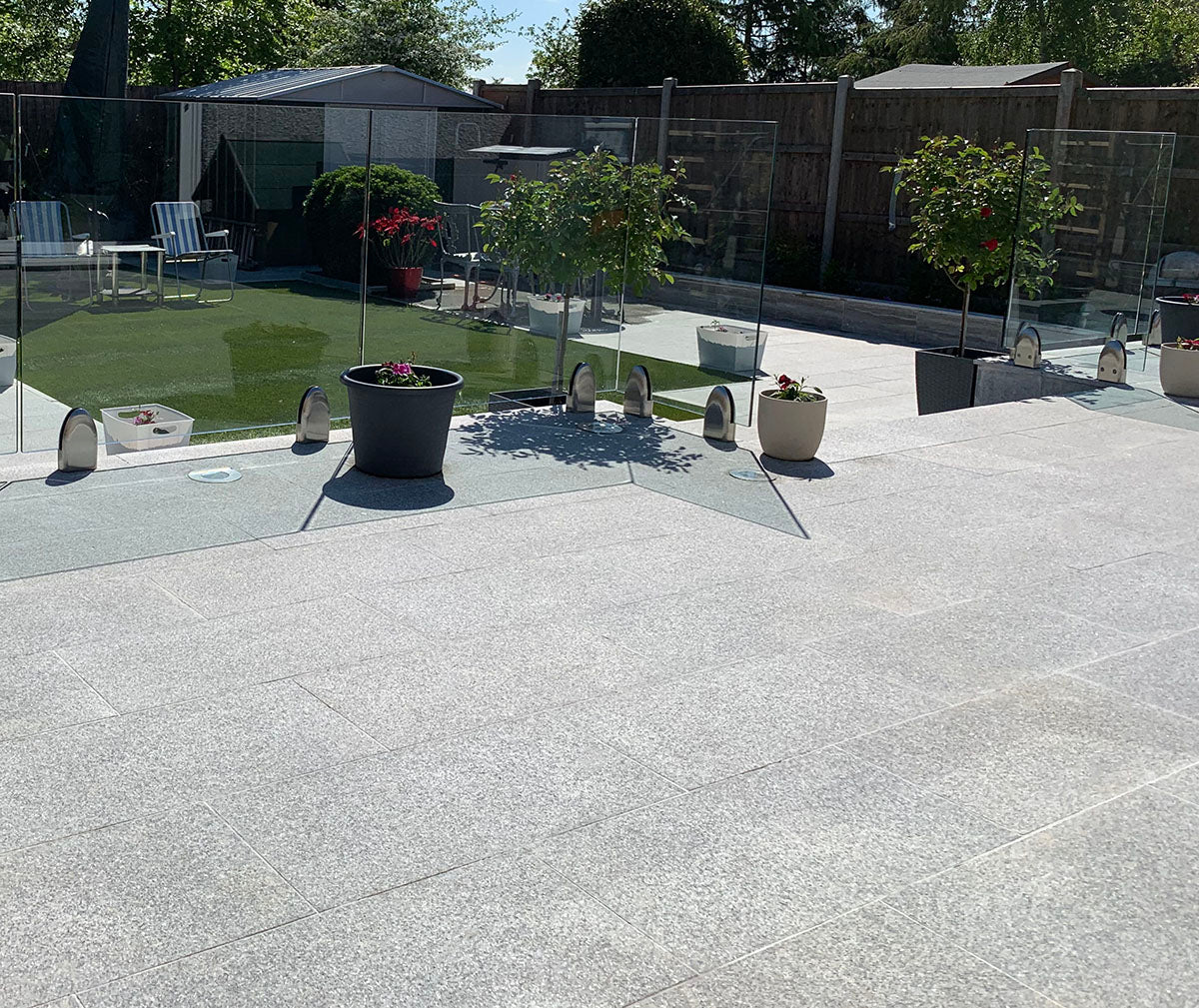 The textured finish also gives better grip to the paving. Light Grey granite slabs can also be used in combination with our Dark Grey Granite if you're looking for a unique design. Each individual paving slab is unique, distinguished by infinite tonal variations, which makes it so desirable.