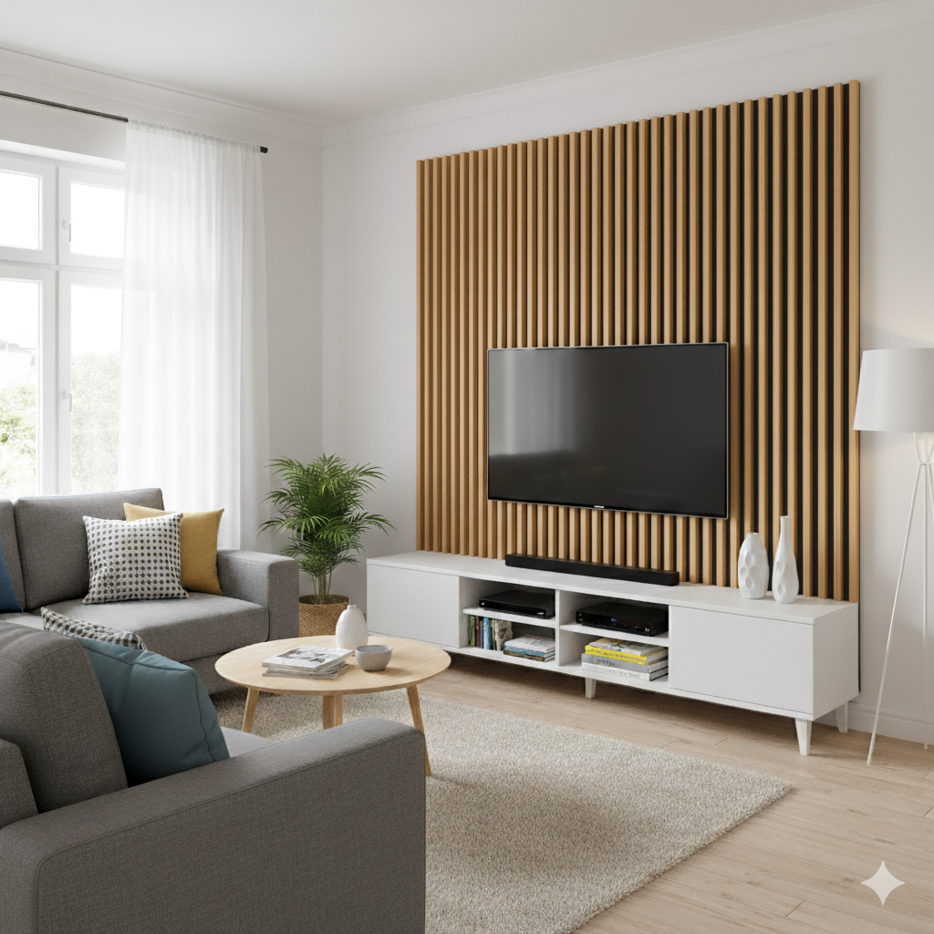 Experience the elegance and modernity of our 3-sided melamine slatted wall paneling! These high-quality panels are the perfect solution for creating a stunning feature wall or elevating your entertainment area. The evenly spaced horizontal slats create a contemporary texture that is both visually appealing and durable. Made from premium-grade wood, these panels add a touch of warmth and natural beauty to any space.