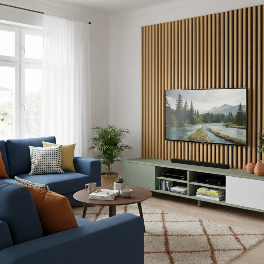 Slat Acoustic Wall Panelling Oak Black Felt Melamine