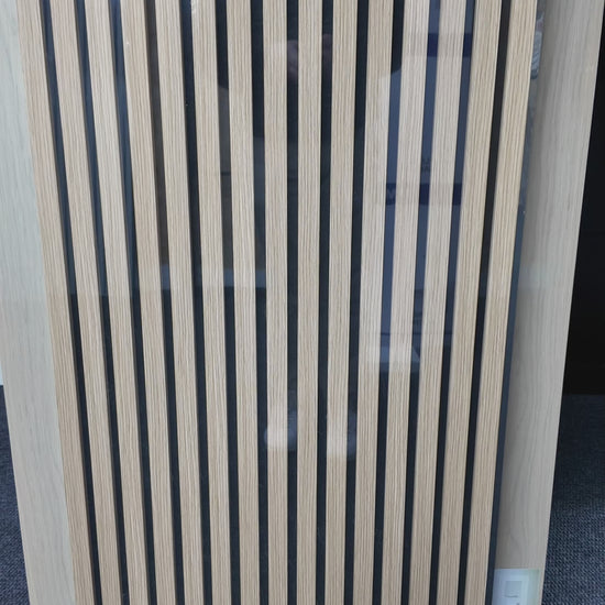 Introducing our slatted wall paneling, the perfect solution for creating a stunning feature wall or adding a touch of modernity to your entertainment area.