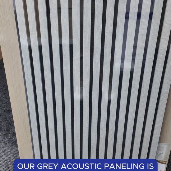 Add a touch of warmth and style to your space with slatted acoustic wall panelling in a rustic grey colour. These panels are made from high-quality wood veneer that has been carefully chosen for its consistency and character.